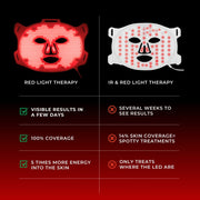 Infrared wavelengths are not included in this mask to avoid additional heat output and to eliminate the need for specialized eye protection, which is often required for higher-power infrared exposure.